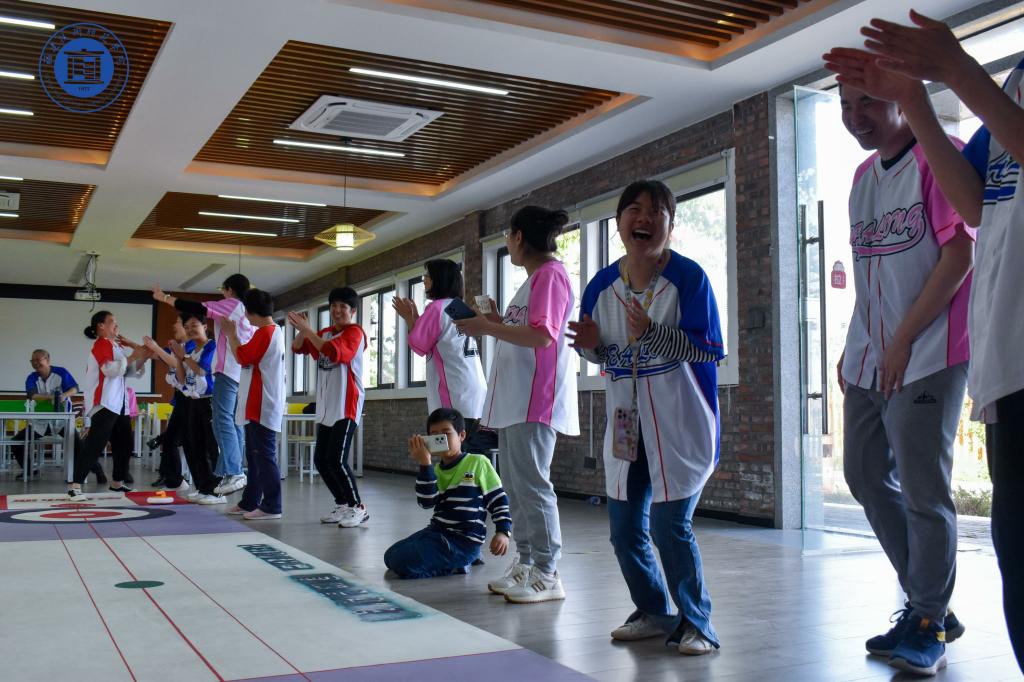 此次拓展活动在福清市南宵村农业创业园拉开帷幕,在教练组组织下,全体教职工先后在露营地和农产品交易中心参加素拓活动、体验凤梨酥制作、旱地冰壶团体赛等丰富多彩活动。全体教职工被分为3组,各小组经过前期趣味热身活动,一番头脑风暴集思广益,在各自队旗上绘画“海洋”主题图案,取名响亮的团队名称和提振士气的口号,逐一精彩亮相,呈现出饱满的精神状态与和谐融洽的团队气氛。凤梨酥体验馆,大家亲自将甜蜜凤梨蓉包裹在酥皮中,体验不一样的DIY收获;旱地冰壶团体赛,项目趣味性强,队员们投壶过程中既锻炼手眼协调能力,也锻炼大脑应变、判断能力,考验各小组团队协作能力。赛场上,队员们通过默契合作、不断地挑战自我和超越自我,尽自己最大努力为团队争取得分机会,现场气氛其乐融融,喝彩声、叫好声此起彼伏。一个个精心设计的拓展项目激发了大家浓厚的参与兴趣与热情,在交叉进行的拓展体验过程中,团队成员们攻克了一个个富有挑战的项目,在分享成功和喜悦中充分体会到了团队信任、有效沟通、换位思考、通力协作的重要性。