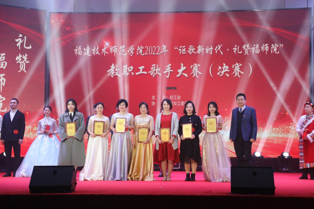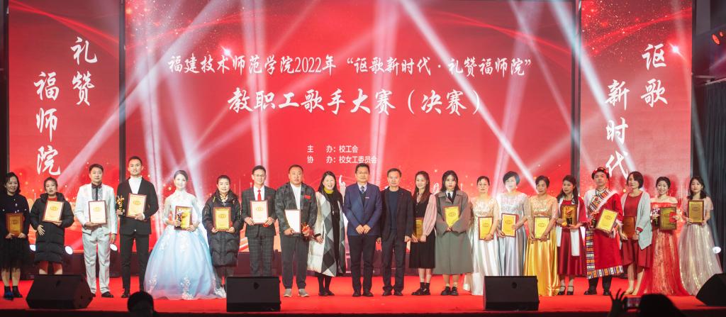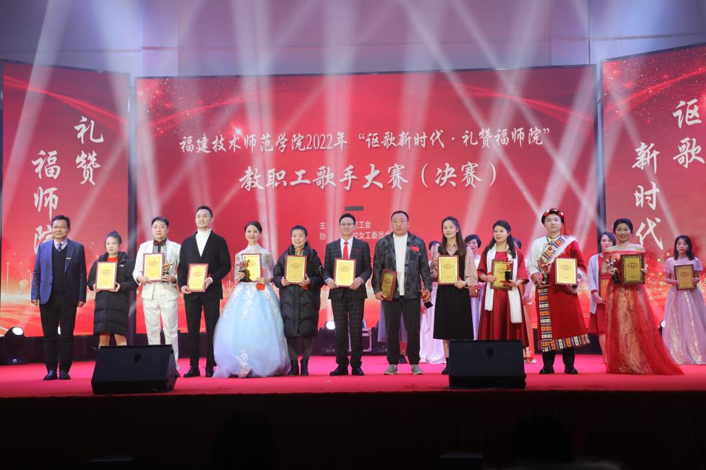 经过激烈角逐,第四、五分工会组合方梦、陈照生获一等奖,教育学院分工会陈飞旻、第一分工会薛昉获二等奖,体育学院分工会潘洋、第二分工会王文征、文化传媒与法律学院分工会林嵩获三等奖。一、二、三等奖获得者和外国语学院分工会陈孔平、经济与管理学院分工会吴颖婷、材料与环境工程学院分工会苏芳、文化传媒与法律学院分工会邱海乔等10组选手荣获校“十佳歌手”称号。第五分工会林晨思、电子与机械工程学院分工会林楠茜、大数据与人工智能学院分工会倪超凡、外国语学院分工会廖永倩、第六分工会程美好、 江雪云及王燕晖等7位教师荣获校“优秀歌手”称号。